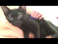 Foster mom named me Hershey because I'm super sweet! I'm a big cuddler and lap kitten. I was rescued from a local shelter. I was all alone, sickly, and pitiful looking...and then I gave my foster mom big, sad "cow" eyes and she couldn't say no. Black cats/kittens are the last ones to ever make it out of a shelter, if they make it out at all. Foster mom didn't want me to be just a statistic. I sure am glad too! She got me all healthy and feeling better so now I'm ready for my forever home to adopt me! I can't wait to have a home of my very own. I love other cats and really need a playful kitty friend in my forever home. I'd be terribly lonely without a kitty friend. I love all kinds of toys, have excellent litter box manners and am a really good boy with my scratching post. If you're interested in adopting me, please fill out an application! More about HersheyGood with Cats, Good with Older/Considerate Kids Only, Somewhat vocal, Likes to play with toys, Likes to be in your lap, Playful, Affectionate Please contact NTCR AT 214-454-9395 should you have any concerns or questions. Video of Hershey: